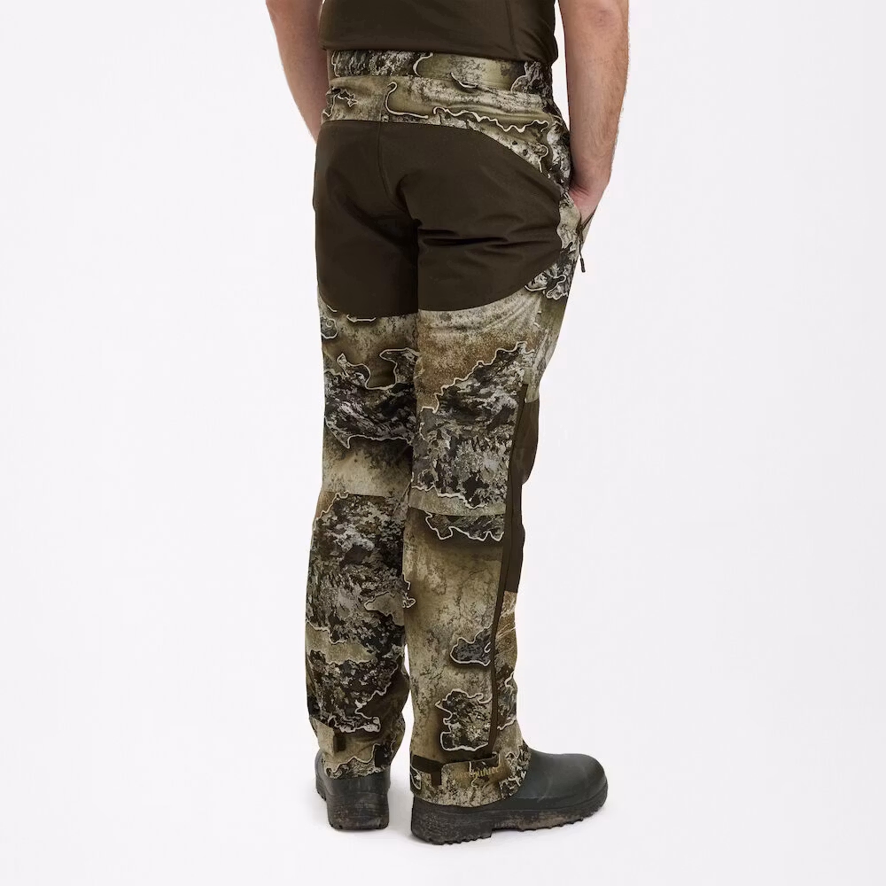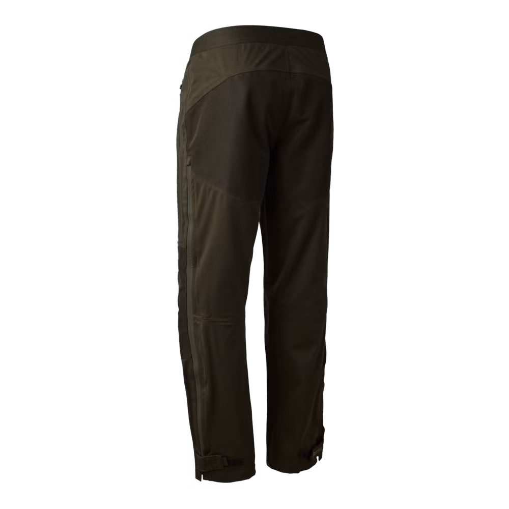 DEERHUNTER Excape regnbyxor är för användaren som söker andningsbara, vindtäta och vattentäta regnbyxor. Byxorna kompromissar inte med funktioner och har således justerbar midja med rem och spänne samt bra förstärkning vid säte och knän. Excape regnbyxorna har två stora framfickor med vattentät dragkedja, som säkerställer att medförda saker förvaras torrt och säkert. Byxorna är med formsydda knän, och justerbara vid anklarna med rem och kardborre. Den extra långa dragkedjan i sidösömmen gör det enkelt att dra byxorna över kläder och stövlar, så att du snabbt kan ta av och på regnbyxorna. Excape regnbyxorna är perfekta som överdragsbyxor för fuktigt väder och regniga dagar i naturen.