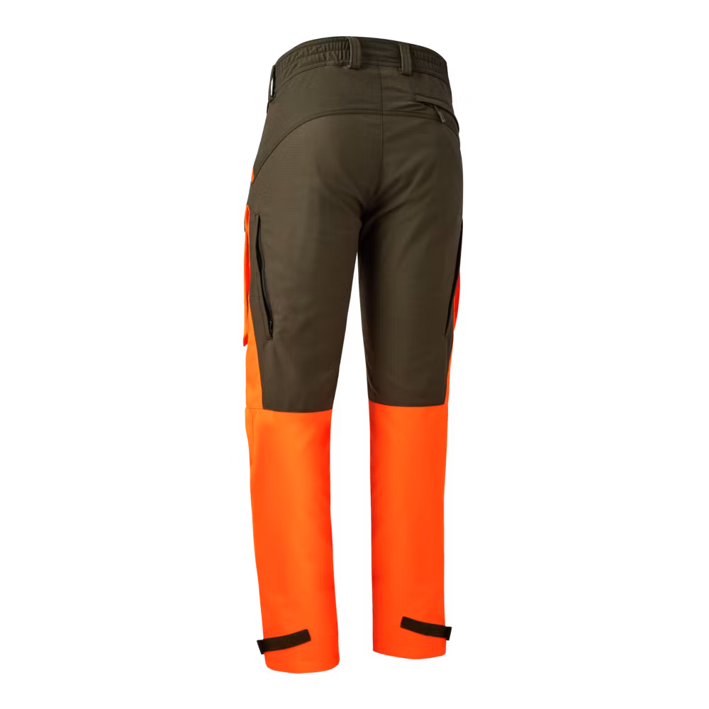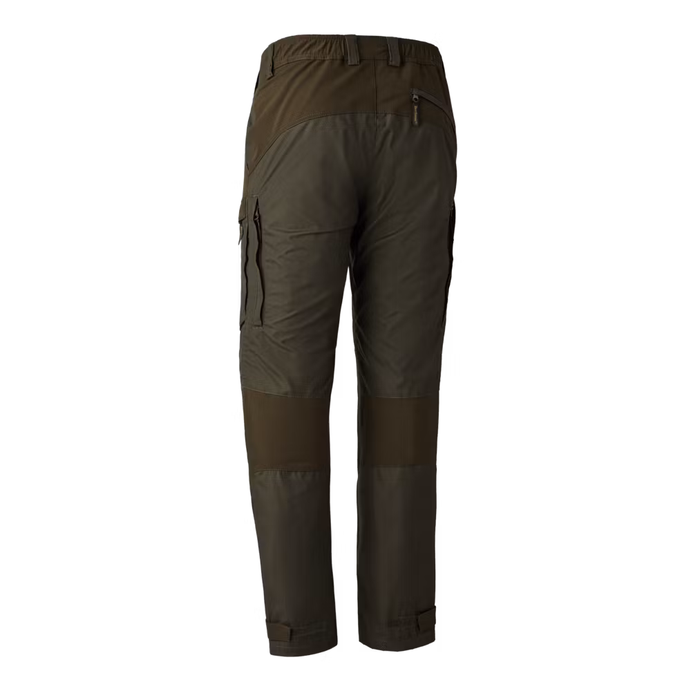 Strike Extreme-byxorna med Deer-Tex-membran är skapade för extrema äventyr och erbjuder optimalt skydd mot extrema väderförhållanden. Vattenavvisande, vindtät och vattentätt material med stretchförstärkning samt extra 4-vägs stretch säkerställer ökad rörelsefrihet. Perfekt placerade fickor för alla typer av förvaring erbjuder en bakficka, två lårfickor, alla med dolda dragkedjor, samt ytterligare två framfickor. En dold knivficka i vänstra lårfickan kompletterar förvaringsmöjligheterna och ger dig allt du kan begära för en dag i naturen. Dessutom har byxorna elastik i midjan bak och justerbara band vid anklarna, så att du är garanterad den mest skräddarsydda passformen. När vädret blir lite varmare, eller du blir mer aktiv, har vi lagt till en dold dragkedja nederst vid vaden för ventilation. Förformade knän och förstärkningar fram och nederst på benen ger byxorna den sista touchen.