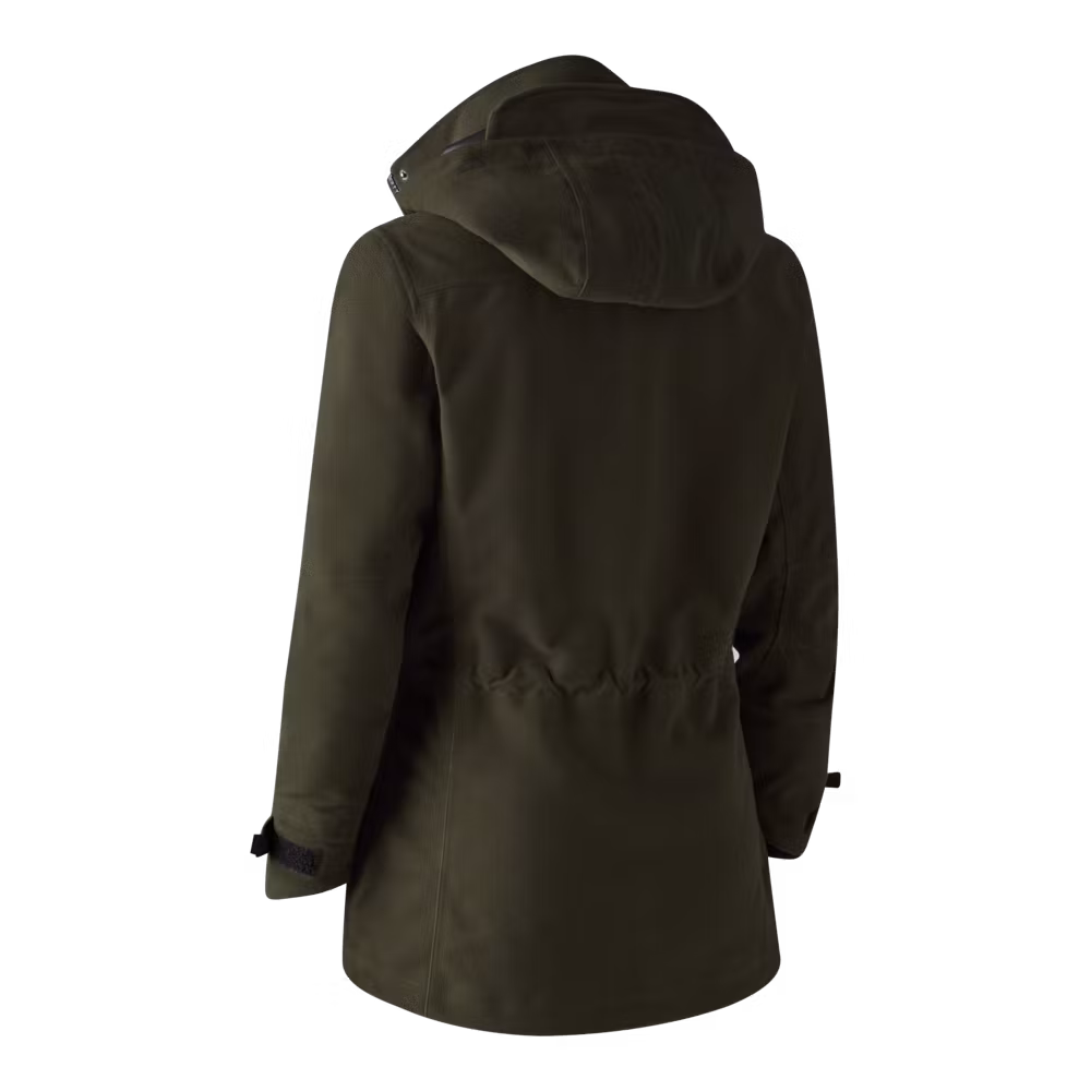 Lady Gabby jackan är kvinnoversionen av den prisbelönta Pro Gamekeeper jackan. Denna jacka är det optimala valet för alla dina höst- och vinterexpeditioner. Lady Gabby jackan är en allroundpresterare. När du klättrar uppför en brant sluttning på jakt efter livets kronhjort, kommer du att älska de vattentäta ventilationsdragkedjorna under armarna och den tvåvägs YKK-dragkedjan som säkerställer enkel åtkomst när du är på språng. När du är långt från allt på en vandring eller smygjakt, är framfickorna med boxveck och lock det perfekta stället att förvara din utrustning, medan de två handfickorna håller dina händer skönt varma när du sitter stilla och spanar ut terrängen. Lady Gabby jackan skyddar dig inte bara effektivt mot vind och väder med en avtagbar huva, neoprenvindslag vid ärmarna och en justerbar dragsko nedtill, den är också superstilfull med en feminin skärning.