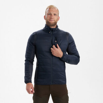 Deerhunters Heat vadderade jacka kombinerar det bästa från materialinnovation med en design som fokuserar på funktion samt textilteknologi, och säkerställer optimal komfort och värme för jägaren när det behövs som mest. Den erbjuder komfort i kallt väder med ett knapptryck och är en del av Deerhunters högteknologiska HEAT-serie med ett smart integrerat värmesystem som aktiveras av en lättillgänglig ON/OFF-knapp i bröstfickan med en justerbar värmestyrka som visas av den inbyggda LED-indikatorn. Av praktiska skäl kan batteriet enkelt tas bort före maskintvätt. Den är isolerad med quiltade paneler på framsidan, baksidan och på ärmarna med extra 2-vägs stretch för ökad flexibilitet. Den är idealisk i kallt väder och är bekväm under alla jaktförhållanden.