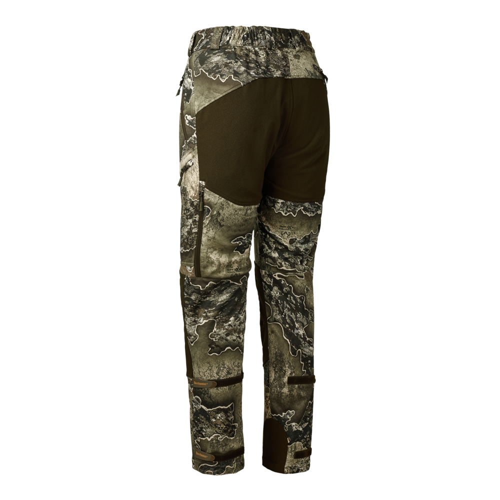 DEERHUNTER Lady Excape Softshell byxor ingår i lättviktskollektionen Excape, som kan bäras lager-på-lager genom hela säsongen. Den finns i enfärgat och med det revolutionerande Realtree EXCAPE?-kamouflagemönstret. Softshellbyxorna är vatten- och vindtäta med den tekniska DEERHUNTER Stormliner®-membranet på utvalda områden, och är dessutom mycket andningsbara. De är fulla av funktionella egenskaper och extra hållbara förstärkningar där det behövs som mest, formade för alla typer av jakt och designade för att stå emot naturens krafter. Excape-kollektionen passar för alla säsonger och du kan lägga till eller ta bort lager beroende på dina preferenser.