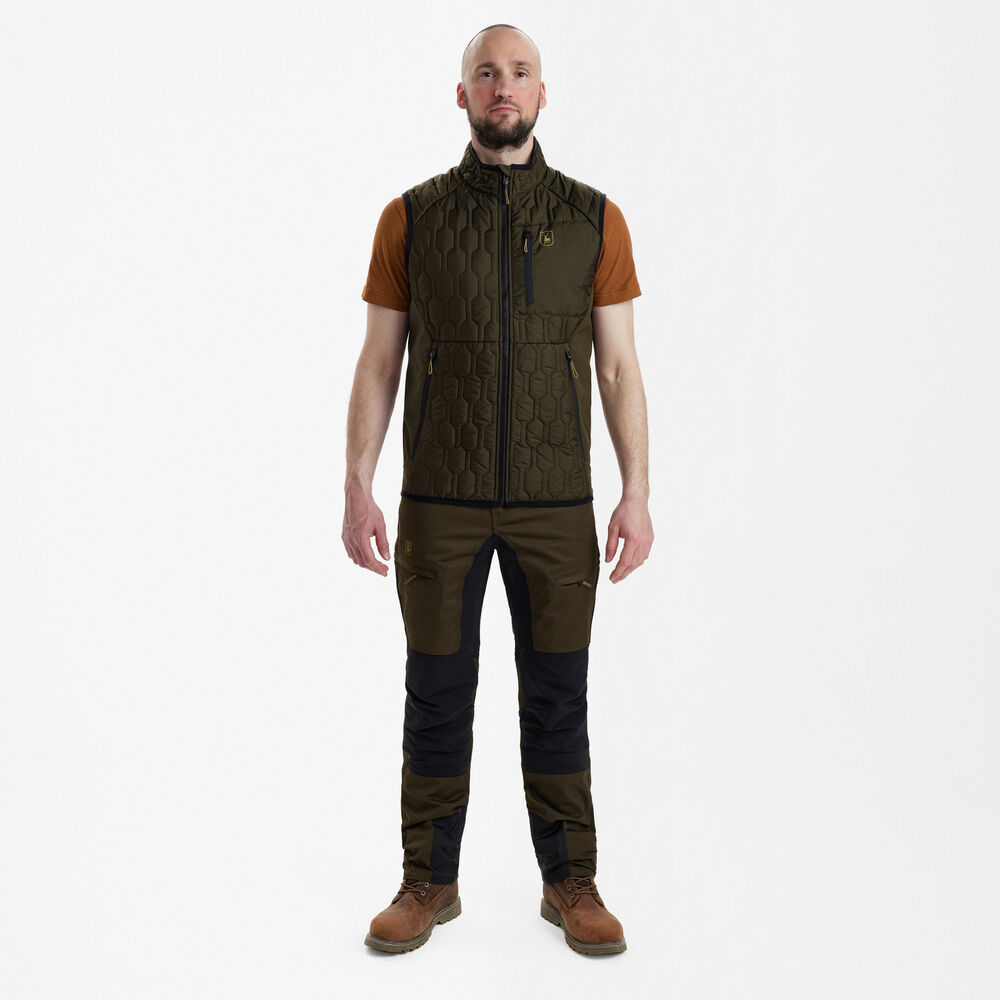 Mossdale-västen är i en nyare quilt design, som ger västen ett snyggt utseende. Den är tillverkad i en kombination av quiltat tyg och softshell. Här hittar du västen, där det finns stora framfickor med dragkedja och en bröstficka med dragkedja. Mossdale-modellen har också två stora innerfickor med kardborrestängning. Västen har kontrasttyg i sidorna, vilket gör västen mycket flexibel och bidrar till en superbra passform och komfort.