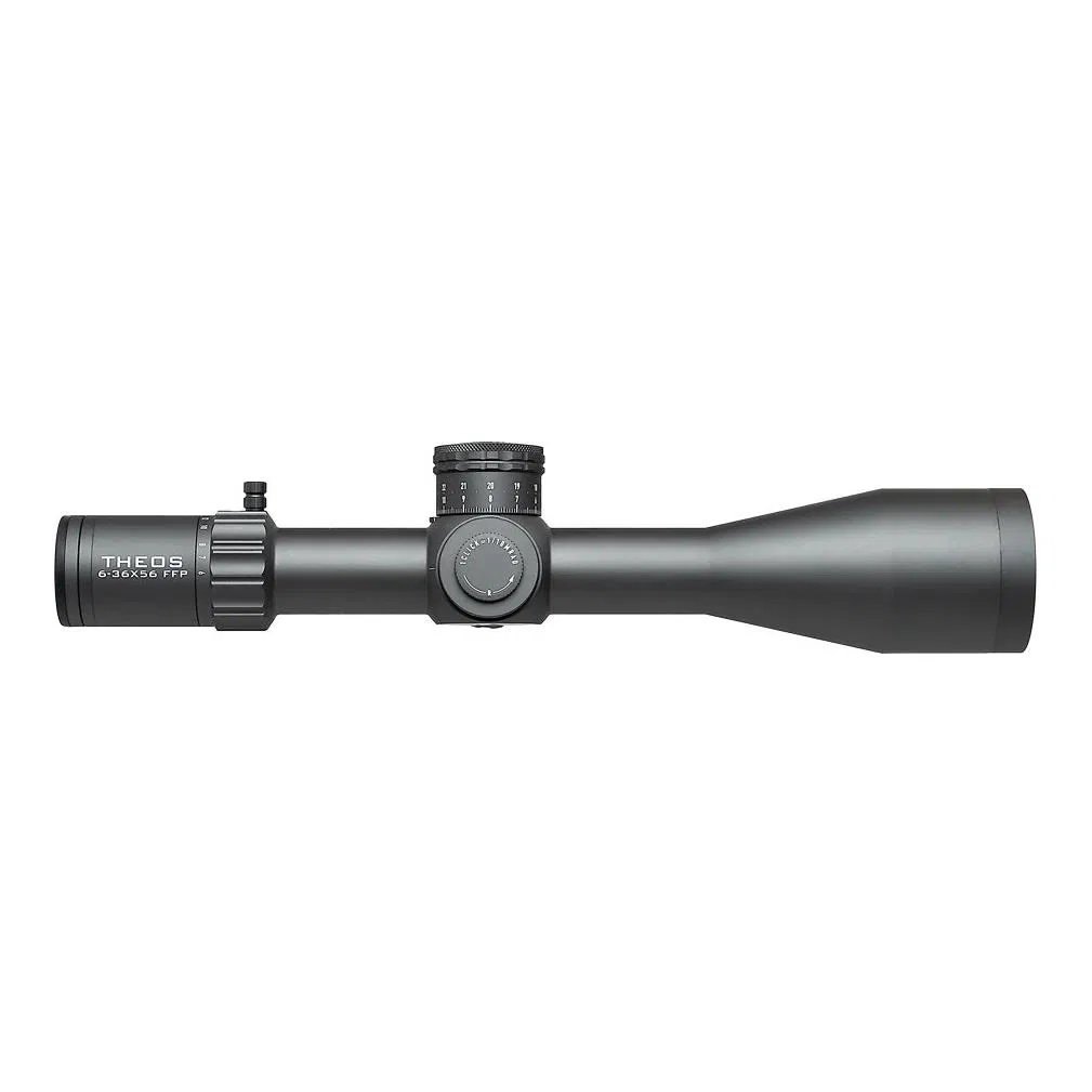 Element Optics Theos 6-36×56 FFP APR-2D MRAD är ett långhållssikte där Element Optics tagit ut svängarna så mycket som det bara gått. Tillverkat i Japan, med en enastående optisk prestanda, väldigt distinkta klickar, ett mycket genomtänkt riktmedel och men ”bullet proof” mekanik, är Teos är ett gigantiskt sikte för den mest kräsne ELR eller PRS skytten.