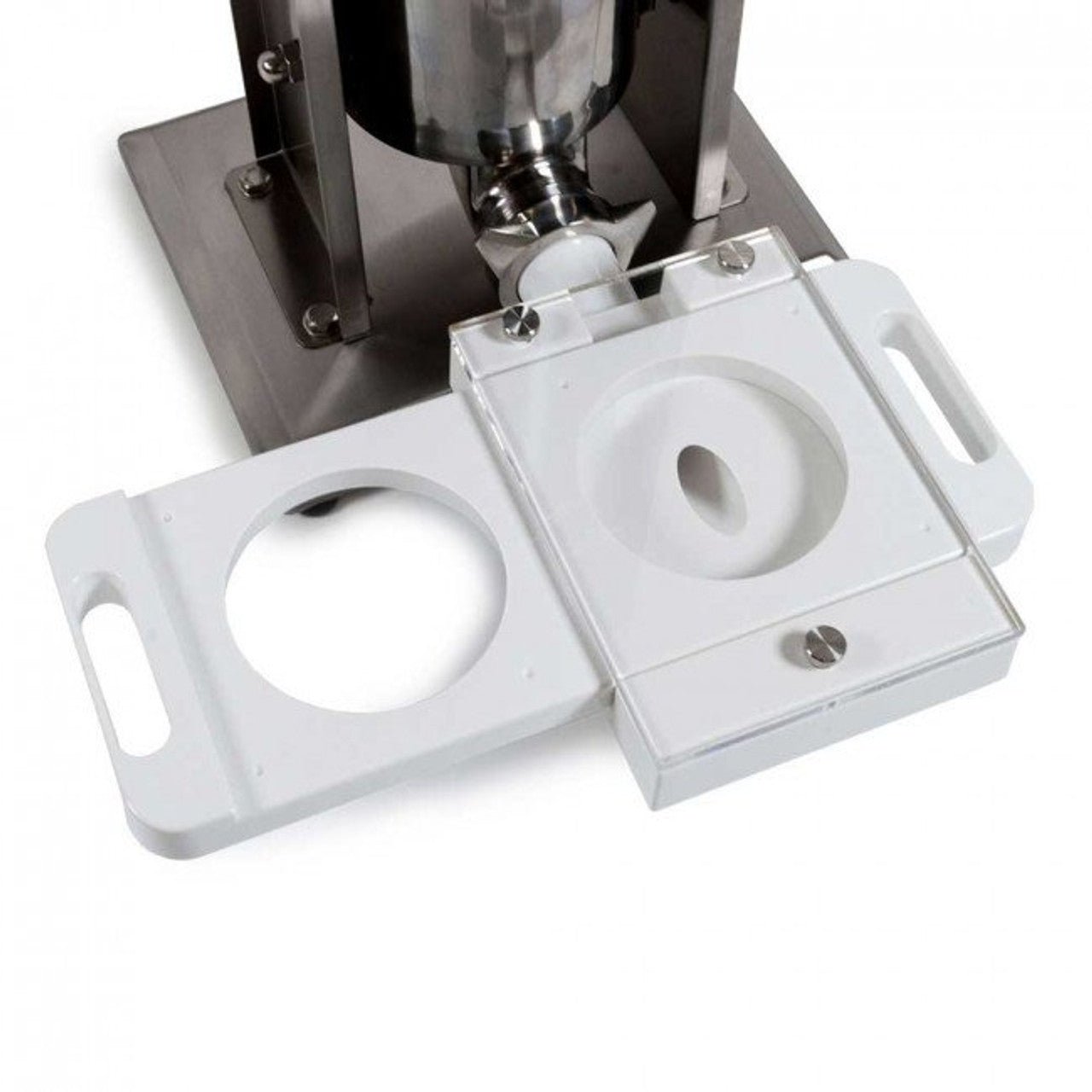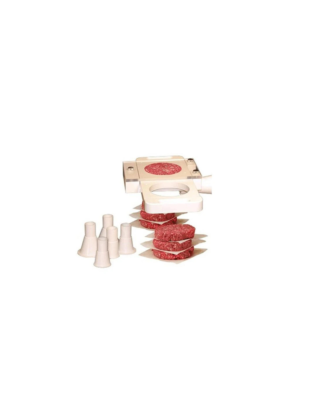 Detta tillbehör fästs på framsidan av din köttkvarn och formar automatiskt perfekta, enhetliga hamburgare. Det är ett effektivt sätt att göra många hamburgare snabbt och hygieniskt.