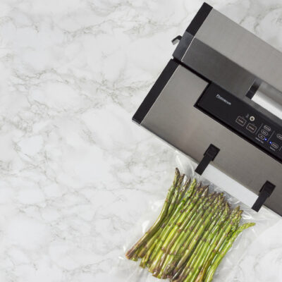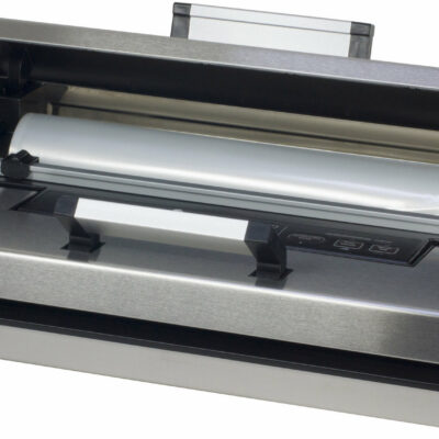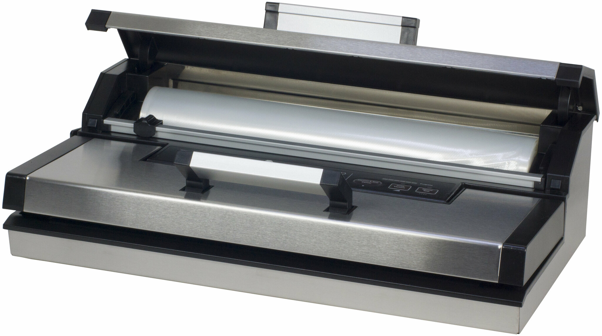 En kraftfull och prisvärd vakuummaskin med dubbel kolvpump! Maskinen är rostfri och har inbyggd rullhållare med skärverktyg vilket gör att den klarar både vakuumpåsar på rulle och lösa upp till en bredd av 40 cm.