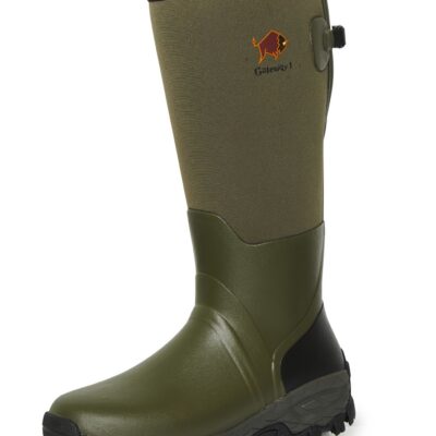 - Design: Stöveln är 100% vattentät och har en justerbar kil med spänne vid skaftet, vilket gör den lämplig för personer med kraftiga vader. En praktisk hälsparkfunktion (Heel Kicker) gör den lättare att ta av.