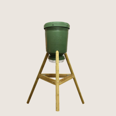 Nu lanserar vi en helt ny produkt! En 125 liters foderautomat med val att köpa den utan ben, med ben eller med upphängning.
