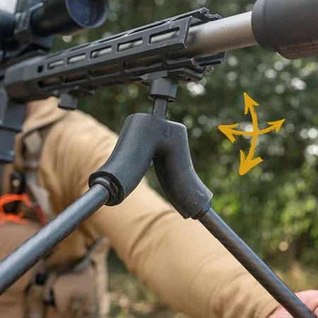 Springbok bipods huvud är uppbyggd av en kropp i ett flexibelt silikonmaterial. Inuti silikonkroppen finns en rostfri fjäder med tre anslutningspunkter för ben och vapen. Tack vare utformningen av silkonkroppen kan benen på sekunder vinklas och ändras mot underlaget helt utan att man behöver anpassa benlängd eller annat. Lyft, vrid och ändra vinkel i ögonblicket. I en skottsituation kan du därför blixtsnabbt anpassa dig till underlag och målets position. Spartan Springbok bipod är ett helt unikt skjutstöd inget annat skjutstöd kan erbjuda flexibiliteten och snabbheten på ett sätt som Springbok.