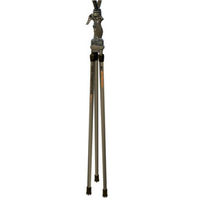 - Extremt flexibel – Benen kan vinklas nästan rakt ut och det långa trebenta stativet kan användas till både stående och sittande skytte.