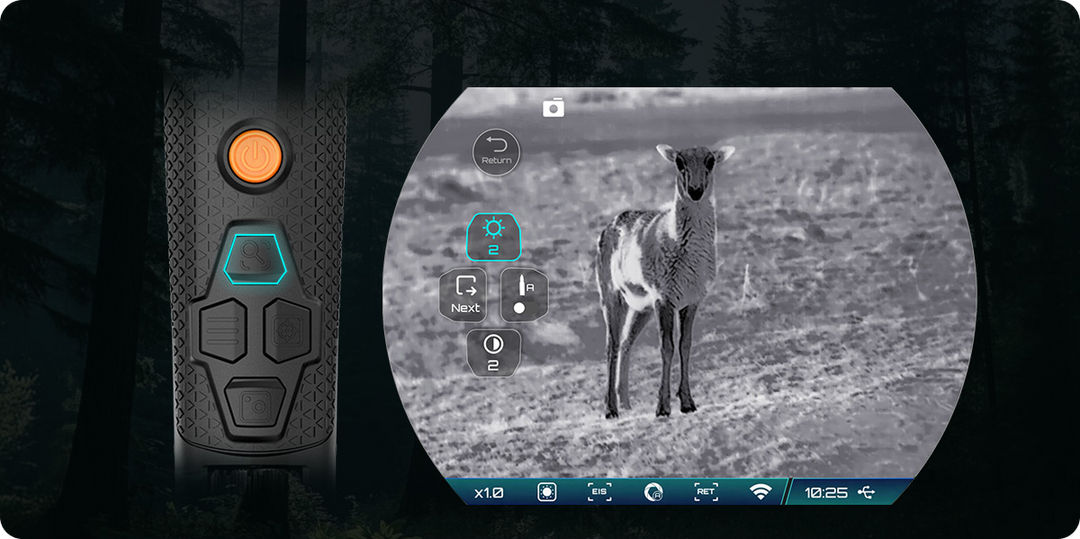 • Intuitiv ergonomi: Enhandsvänlig fokusjustering och smarta knappar med visuell feedback på skärmen ? optimerat för användning med handskar i totalt mörker.
