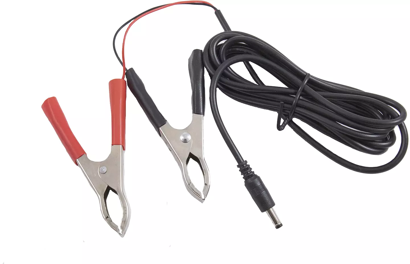 Denna strömkabel har större och rejäla krokodilklämmor som passar batterier med både större och mindre batteripoler.