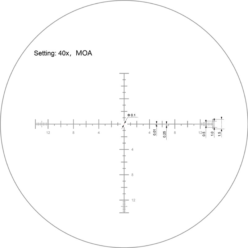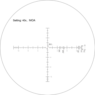VCO-6 MOA tävlingskikarsikte – VCO-6 MOA-kikarsiktet i det andra fokalplanet är specialbyggt för tävlingar på bänk, fältmål och F-klass. En liten mittpunkt på 0,1 MOA ger en exceptionellt exakt siktpunkt för bullseye-arbete vid hög förstoring, omgiven av en 2 MOA-cirkel och 1 MOA hashmark-steg som stöder enkla hållplatser och snabb referens utan att störa vyn. Den rena designen håller målet synligt istället för att täcka det.