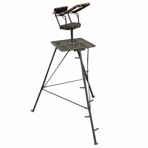 Med sin generösa plattform så blir den stadig att sitta på. Stolen är vändbar i 360 grader vilket ger dig en flexibilitet i din vakjakt och kan snabbt komma i bra skottläge. Ryggstödet och sitsen är vadderad vilket ger sig en mycket bekväm stund i väntan på viltet.
